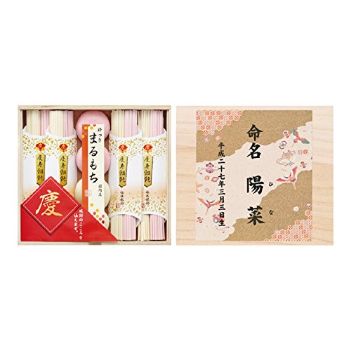 慶びを伝える紅白のうどんの取合せを、上品な木箱に詰めました。世代を選ばない内祝いの好適品です。商品の蓋にメッセージをお入れ致します。お子様のお誕生のお披露目に、お名前と生年月日を、ご結婚の内祝いとしてもご利用頂けます。