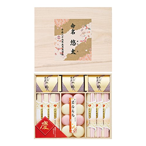 慶びを伝える紅白のうどんの取合せを、上品な木箱に詰めました。世代を選ばない内祝いの好適品です。商品の蓋にメッセージをお入れ致します。お子様のお誕生のお披露目に、お名前と生年月日を、ご結婚の内祝いとしてもご利用頂けます。