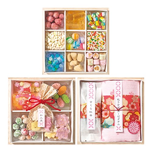 - 34×90cmガーゼタオル1枚・小花豆40g・四季の花ビスケット30g・いろは金平糖30g・コスモス金平糖30g・花あられ20g・小っちゃなこんぺいとう20g・奉天20g・さくら豆20g・忘れな草金平糖20g・和三盆(3個入)・あめ風船(6粒入)・べっこう飴(6粒入)・きなこ飴(6粒入)・小粒仕込飴19g・ぽん菓子5g各1袋・ティーバッグ(さくら紅茶)2.5g×2袋・賞味期間/製造日より常温約150日・タオル[日本製]・紅茶[スリランカ製]・【小麦・落花生・オレンジ・ごま・大豆】