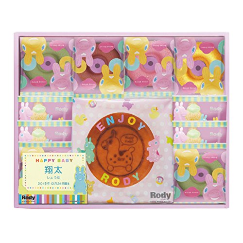 お子様のお名前をカラフルな可愛らしさで大人気のロディと一緒にお披露目。 ロディ柄がプリントされたちょうどいいサイズのチーズケーキにロディの形をした甘いフィナンシェや、ロディのイメージぴったりの色とりどりの焼ドーナツなど、お披露目にピッタリのお菓子の詰合せです。