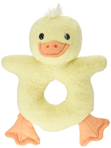 Apple Park's Ducky Picnic Pal Soft Ring Rattle is firmly stuffed, and feels soothing on your baby's tender gums;Stitched details and a gentle rattle combine to make this toy a sure-fire favorite;Made with 100% organic cotton and hypoallergenic, natural corn fiber filling, this soft-stuffed toy measures 6'' x 6'';Winner of Dr. Toy's Best Green Product Award, Best Vacation Product Award, and Best Bay Area Toy Company Award;Safe for children, better for the environment, and always beautifully green, that's the Apple Park Promise