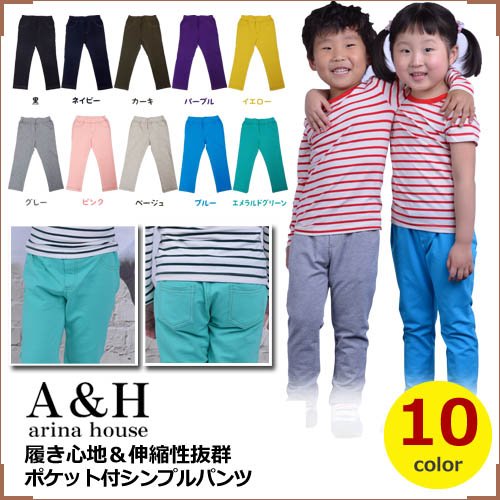 arina house(アリーナハウス) ポケット付 シンプルパンツ(10色)(13(130cm) ピンク)女の子 男の子 キッズ ダンス カジュアル 通園用 無地 ブラック 100cm 110cm 120cm 130cm