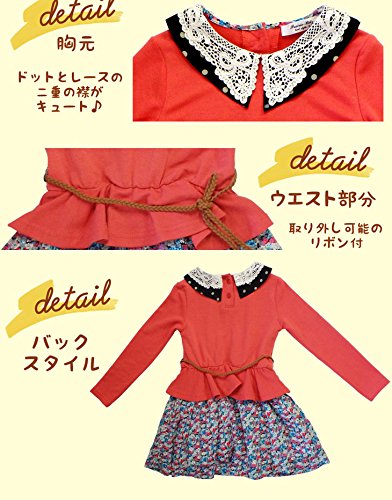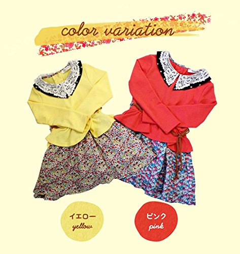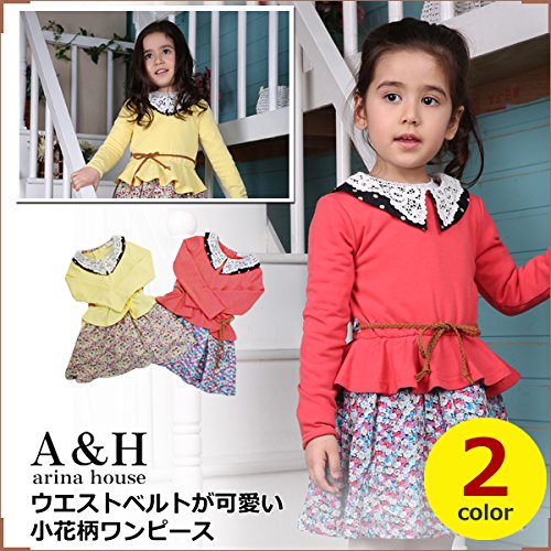 arina house(アリーナハウス) 襟元レースがかわいい 腰元のベルトがワンポイント星小花柄ワンピース(ピンク 15号(140cm)) 90cm/100cm/110cm/120cm/130cm/140cm