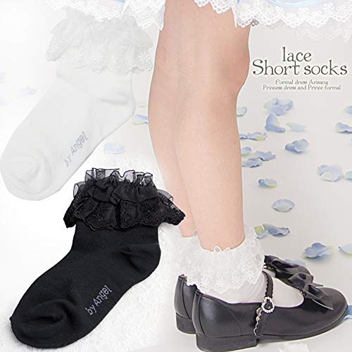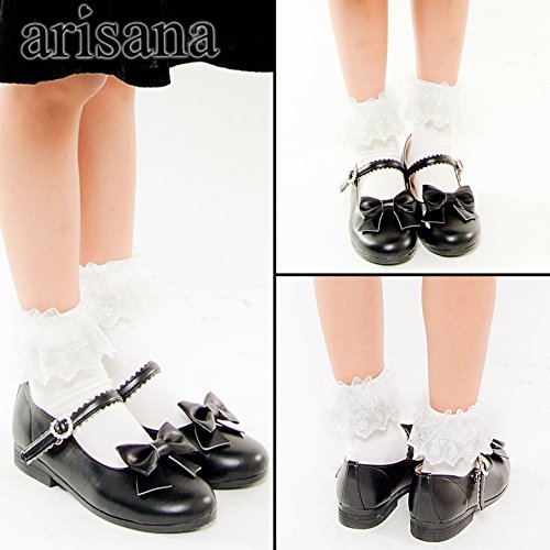 [アリサナ]arisana ショートソックス キッズ 女の子 フォーマル 靴下 白 黒 スクール フリフリレース靴下 黒 11〜12cm