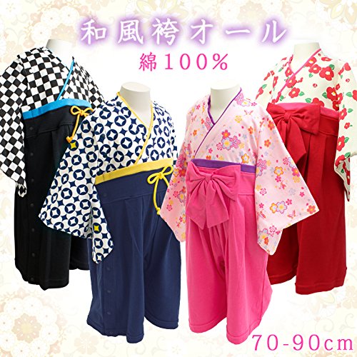 ベビー袴 袴 ベビー服 男の子 初節句 端午の節句 黒 青 赤 ピンク 綿100% 赤ちゃん お食い初め ロンパース 服 衣装 70 80 90