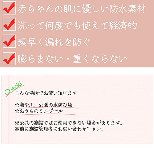 ベビーの肌に優しい防水素材を使用。洗って何度でも使用できるベビー水着です。
