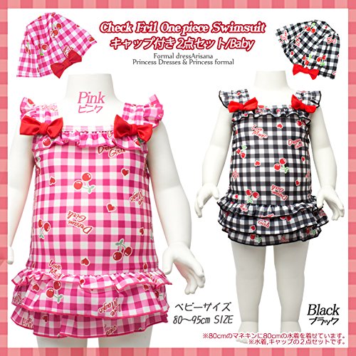 (アリサナ) arisanaチェックフリルワンピース水着キャップ付き2点セット ベビー 90cm ブラック