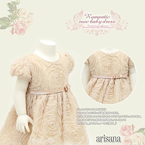 (アリサナ) arisanaバラ刺繍が魅力的なローズチュールレースベビードレス ベビー 90cm【L】 シャンパン