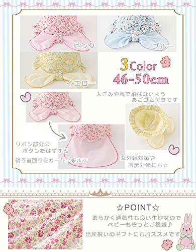 (アリサナ) arisanaベビー小花柄帽子/首筋日よけ・あごゴム付き ベビー 46-48cm イエロー
