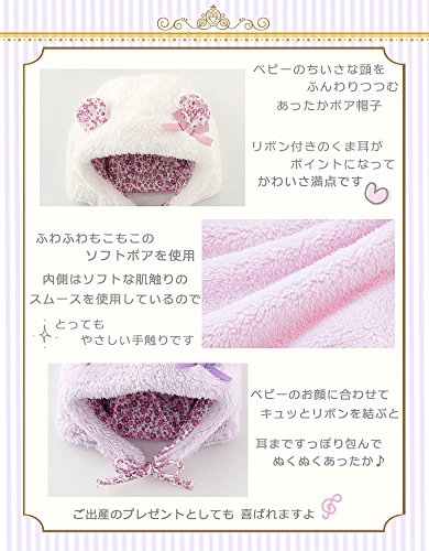 (アリサナ) arisana花柄/耳付きボア帽子 ベビー 48~50cm パープル