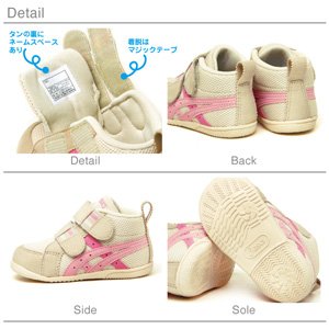 耐久性にも優れた、アシックスのすくすく。元気に遊ぶお子様の足元をシッカリ守ります。 この時期の赤ちゃんの足は、ほとんどが軟骨で形成されています。そんな柔らかな足をやさしく包むファーストシューズ。 甲の2本ベルトでしっかりホールドできるオープンベロは、たくさんのママから、履かせやすい とお墨つき つま先を今まで以上に大きく巻き上げて、つま先が引っかかりにくいよう配慮。 吸汗性・低刺激性のメディエルを使用し、マシュマロのように優しく、足を清潔に包みます。 特徴 ・足への負担を軽減するP3クッション。 ・吸湿、吸汗、拡散性が良く、肌に優しい。 ・高い放熱生で、靴内の温度を快適に保つ。 商品詳細 素材 アッパー:合成繊維/人工皮革 ソール:ゴム底 カラー ベ