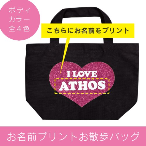 [名入れ]ハート型 アイラブ I LOVE お散歩バッグ(小)ハートピンクラメ (ブラック)