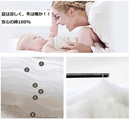 6重織の層の中に空気の層ができ、優れた通気性と保湿性があります。さらに大人に比べて2~3倍の汗をかく赤ちゃんの汗をしっかり吸収、 寝苦しい夜にも快適にお使いいただけます!