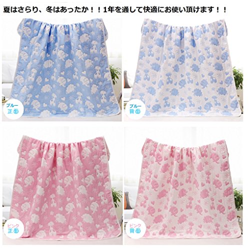 6重ガーゼ ベビーケット 湯上り タオル ひざ掛け ふわふわ ガーゼタオル 子供 バスタオル キッズ 用 ブランケット 毛布 通気性が良い 110×110cm 選べるデザイン (動物(ピンク系))