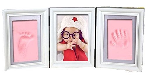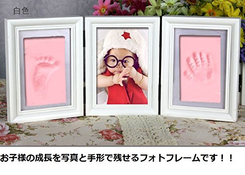大切な一瞬をいつまでも残しておきませんか? ご出産のお祝いに最適です。 セット内容:3面折畳式フォトフレーム本体 x 1、手形制作キット x 2
