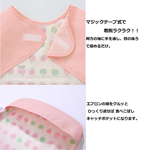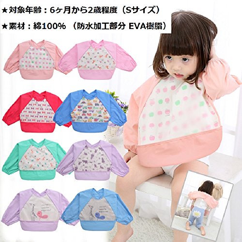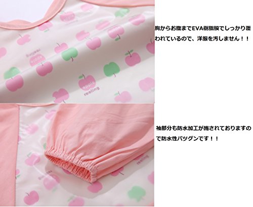 本製品は長袖防水エプロン(食べこぼしキャッチポケット付き)です。 ★サイズ:袖丈 34cm 胴囲:32cm 長さ:31cm