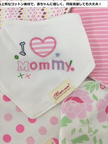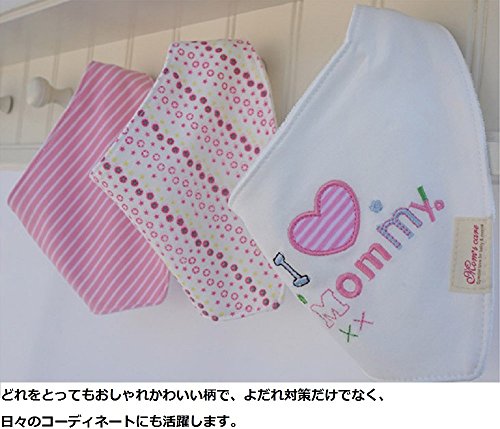 バンダナ 風 三角 スタイ スナップボタン 付 で便利 よだれかけ エプロン 出産祝い 6枚 セット(アイラブマミー(ピンク))