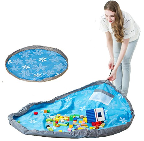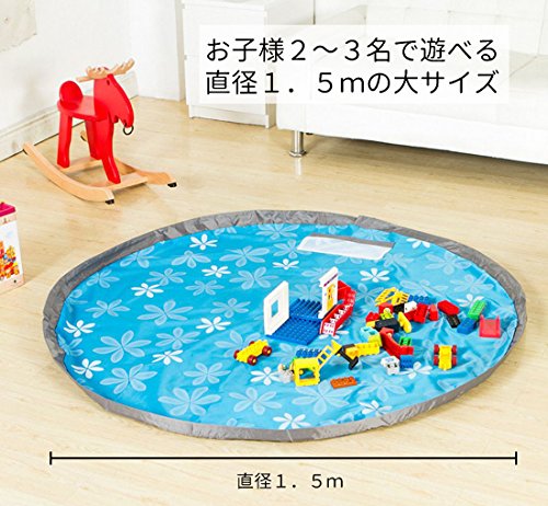 おもちゃ 収納袋 プレイマット にもなる 収納マット お片付けマット 防水仕様 大小 2個セット (ブルー)