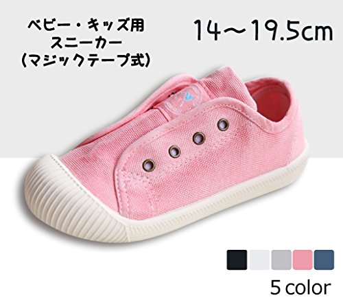 ベビキャレット キッズ スニーカー 紐なし マジックテープ 通園 通学 キャンバス シューズ 14 15 16 17 18 19 cm (14, ピンク)