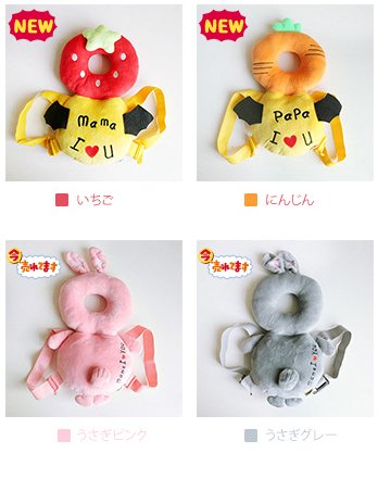 - よちよち歩きを始めた赤ちゃんに必需品の後頭部保護グッズ。付けているのが気になりにくいリュックタイプで、しかも軽量。赤ちゃんも嫌がらずにつけておくことが出来ます。