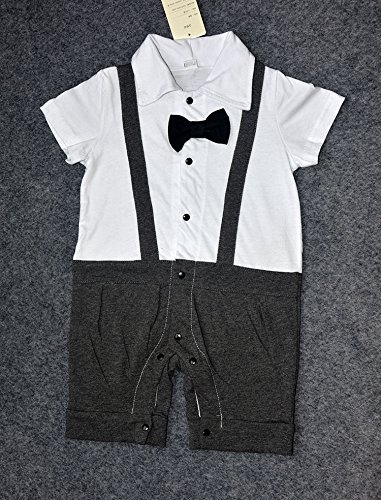 男の子 ロンパース ベビー フォーマル キッズ 半袖 カバーオール 結婚式服 記念撮影 簡単に着れる スナップボタン式 (90cm, グレー)