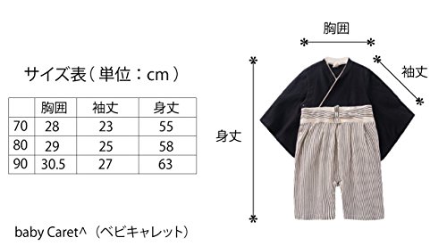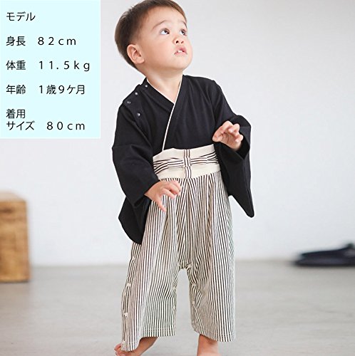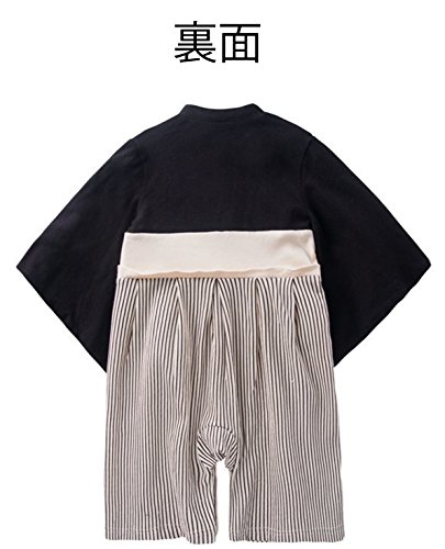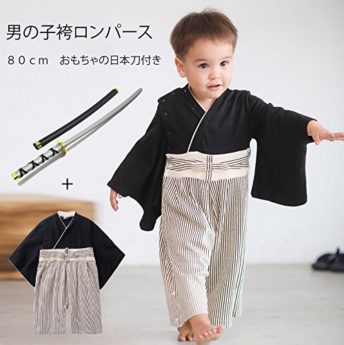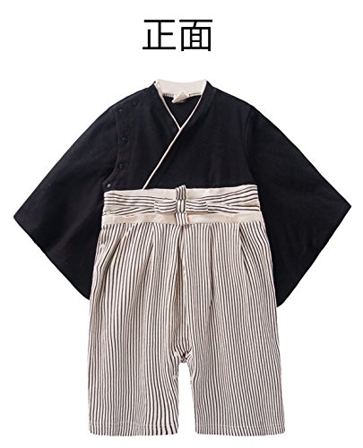 男の子 袴 ロンパース ベビー 着物 キッズ カバーオール 和装 一張羅 簡単に着れる スナップボタン式 (80cm, A)