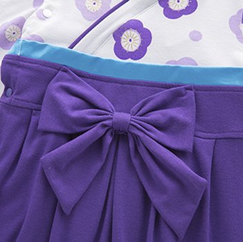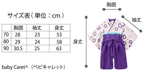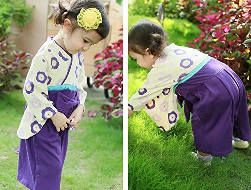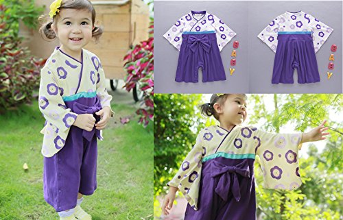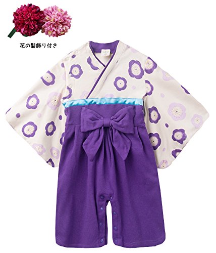 女の子 袴 ロンパース お食い初め 端午の節句 着物 撮影 ベビー 衣装 お花の髪飾り付き (90cm, 紫)