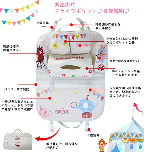 べビキャレット おでかけポケット 車用 多機能収納 ドライブポケット 持ち運び便利 マザーズバッグ シートポケット (サーカス)