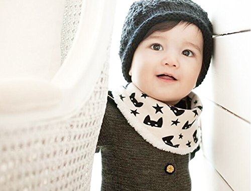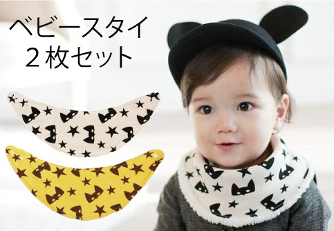 ベビースタイ 赤ちゃん スタイ よだれかけ 北欧柄 秋冬モデル 2枚セット (ネコ×スター)