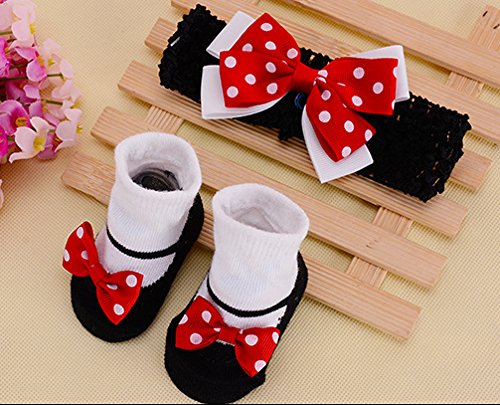 新生児 用 女の子 靴下 赤ちゃん ベビー リボン付き ソックス と ヘアバンド の2点セット