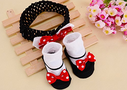 - 生まれたばかりの新生児用の女の子のソックスとリボン付きのヘアバンドのセットです。