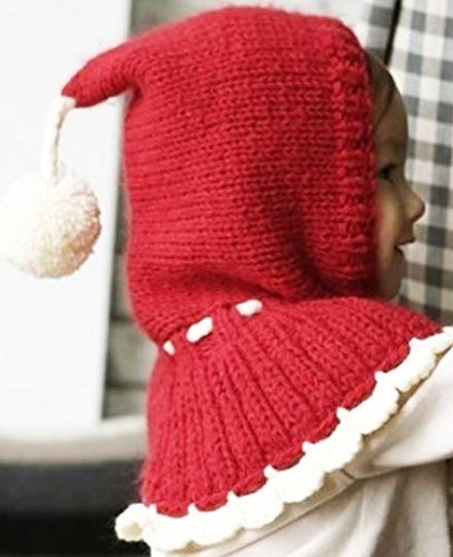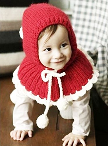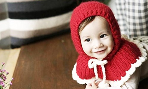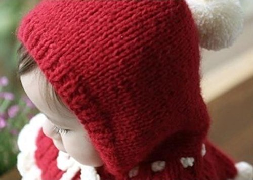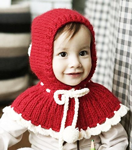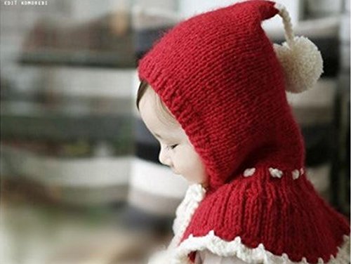 可愛らしい赤ずきんちゃん風のポンポン付のフード付きのケープ。ニット素材で伸び縮みしますので多少調整可能。0歳〜3歳位まで対応。 素材:ウール100% 風などで帽子が取れてもケープ部分があるので落下せず便利です。肩と耳まであったか♪ポンポン付きの紐で調節可能ですのでお子様のサイズに合わせてお使い頂けます。帽子の先にも可愛いボンボン付き。 柔らかい厚手のニット素材で、チクチクせずとても暖かいです。伸縮性があり0〜3歳位まで長くお使い頂けます。 これで防寒対策はバッチリ♪冬のお出かけやお散歩も安心です。