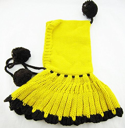 ベビー あったか 赤ずきんちゃん風 ニット 帽子 防寒 フード ケープ 一体型 マフラー 秋 冬 (イエロー)