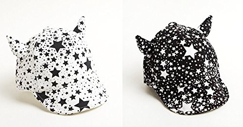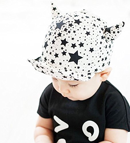 ベビー キャップ カワイイ ツノ付 スター キャップ ハット ( 赤ちゃん 幼児用 頭囲 48~50cm ) (ホワイト)