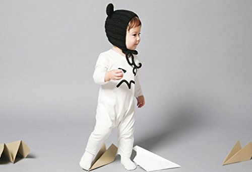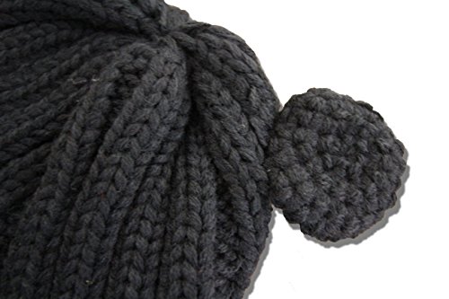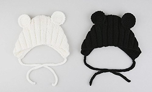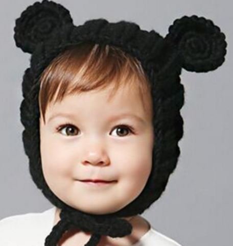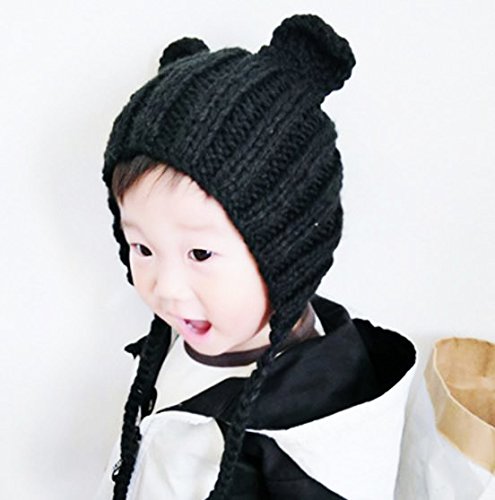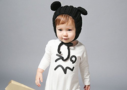 ベビー 耳付き 帽子 あったかニット キャップ 秋 冬 帽子 (黒)