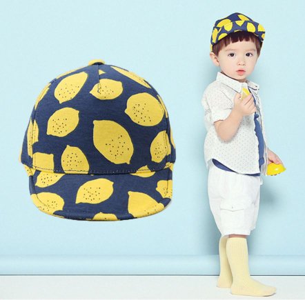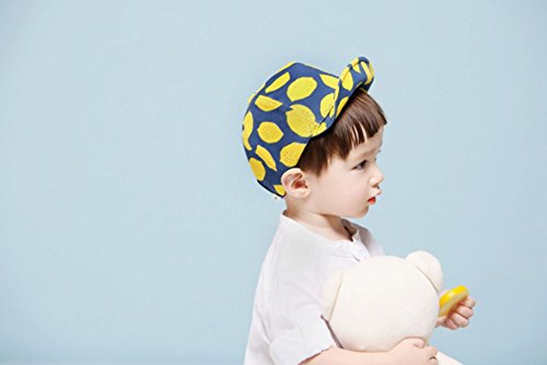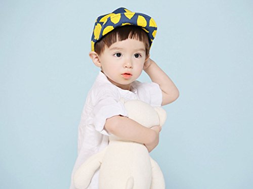 ベビー キャップ 爽やかな レモン柄 ( 赤ちゃん 幼児用 ハット 帽子 頭囲 48~50cm ) (ネイビー)