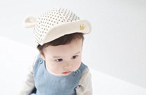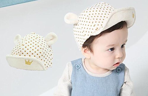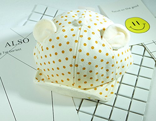 ベビー キャップ 赤ちゃん 帽子 ( 幼児用 ハット 頭囲 47~50cm ) (クリーム×水玉×耳付き)