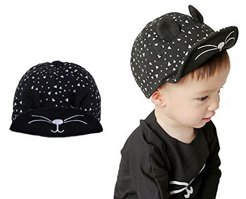 幼児用 猫 の 耳付き 帽子 赤ちゃん ハット ( 頭囲 47~50cm ) (黒猫)