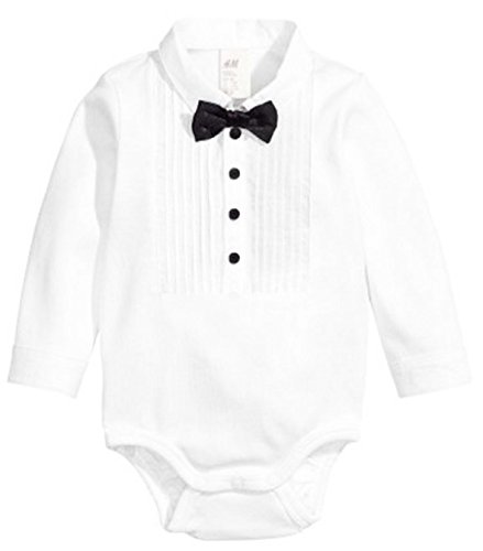 男の子 ロンパース フォーマル風 ベビー服 長袖 男の子 新生児 撮影 衣装 結婚式などに (90cm, 白)