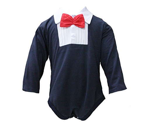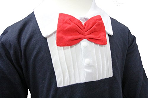 - 蝶ネクタイ付のフォーマル風ベビーロンパース。選べる2色展開。股下スナップボタン付。