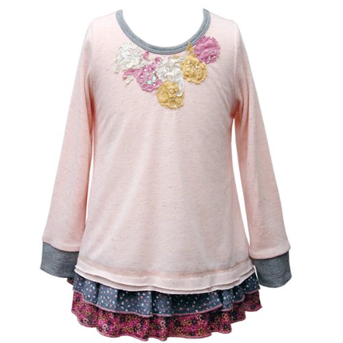 baby Sara(ベビーサラ)女の子用ベビーピンクスパンコールフラワー長袖チュニック 4T 4歳用 110cm 水玉模様,3段フリルチュニック,花柄トップス,出産祝い,ギフト,プレゼント,【並行輸入】