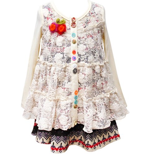 baby Sara(ベビーサラ)女の子用生成フラワーレースカーディガン&フェアアイル柄ノースリーブワンピース2点セット 6years 6歳用 120cm ギフト,幾何学・抽象模様ドレス【並行輸入】
