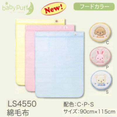 西川産業 baby puff ベビー LS4550 フードカラー 綿毛布 90×115cm