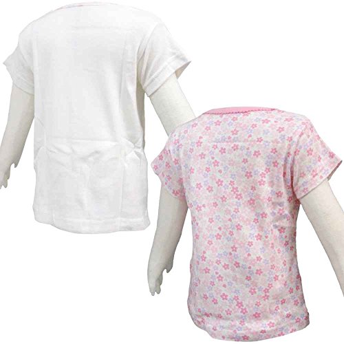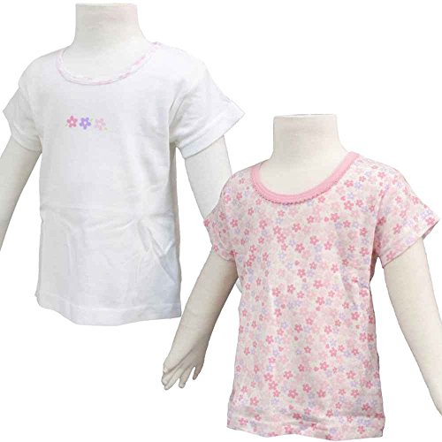 ガールズベビー下着[baby’s Dream(ベビーズドリーム)]綿100%肌着|下着|インナー|丸首半袖柄違いシャツ2枚組|赤ちゃん用 90cm ホワイト-ピンク-花柄