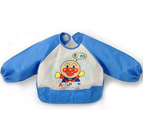 ベビー 長袖 エプロン 子供 幼児 スモック 食事用 アンパンマン柄 キャッチポケット付き 全3色 1歳 2歳 (青)