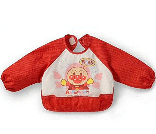 ベビー 長袖 エプロン 子供 幼児 スモック 食事用 アンパンマン柄 キャッチポケット付き 全3色 1歳 2歳 (赤2枚×黄色1枚セット)