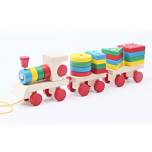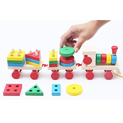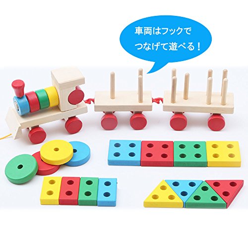 • 積み木を平面に並べて 図形遊びも!機関車はフックで繋げて遊べます