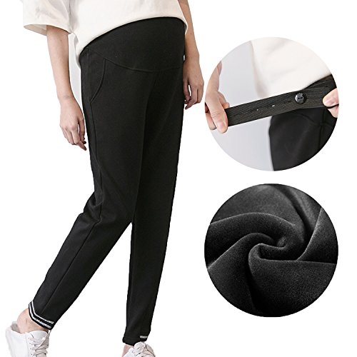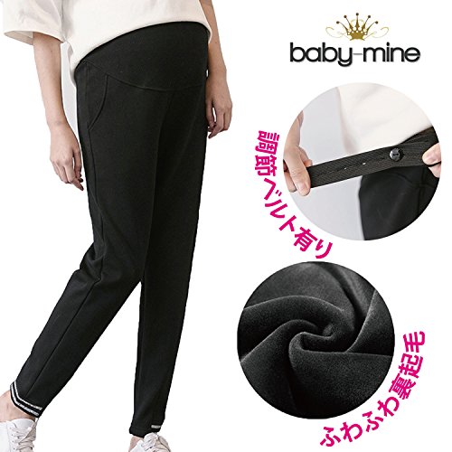 Baby-mine(ベイビーマイン) マタニティ パンツ ロング ストレッチ 裏起毛 ブラック 調節可能 暖かい ポケット (XL)