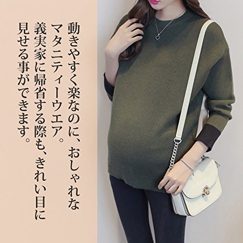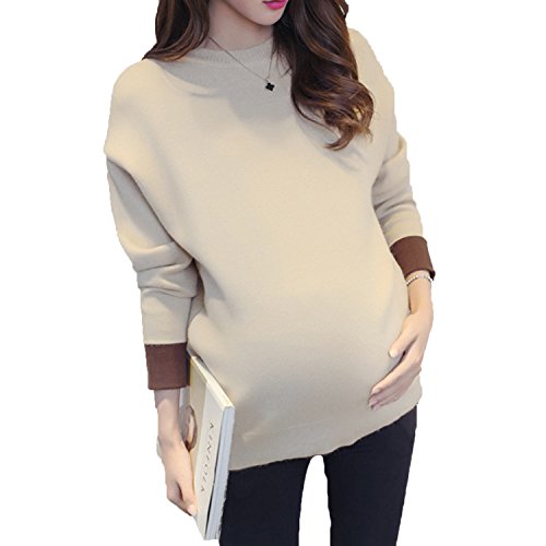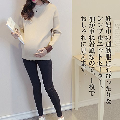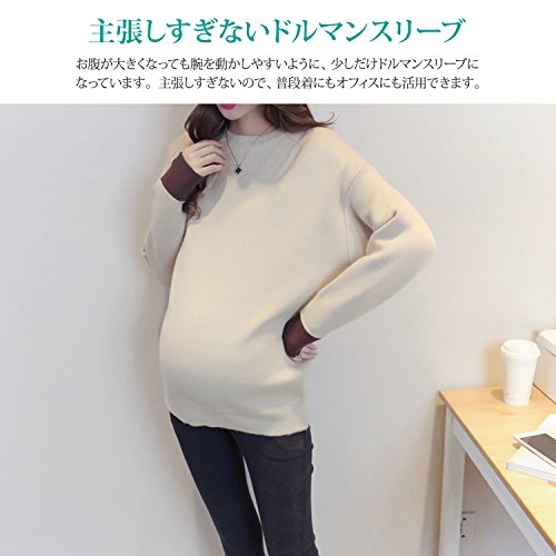 Baby-mine(ベイビーマイン) マタニティ ニット セーター 暖かい バイカラー 切替 オフィス エレガント きれいめ ゆったり ドルマンスリーブ (ベージュ)