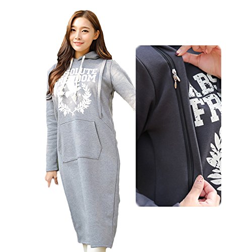 Baby-mine (ベイビーマイン) マタニティ パジャマ ロング ワンピース 裏起毛 アメカジ 授乳服 厚手 (L, ライトグレー)
